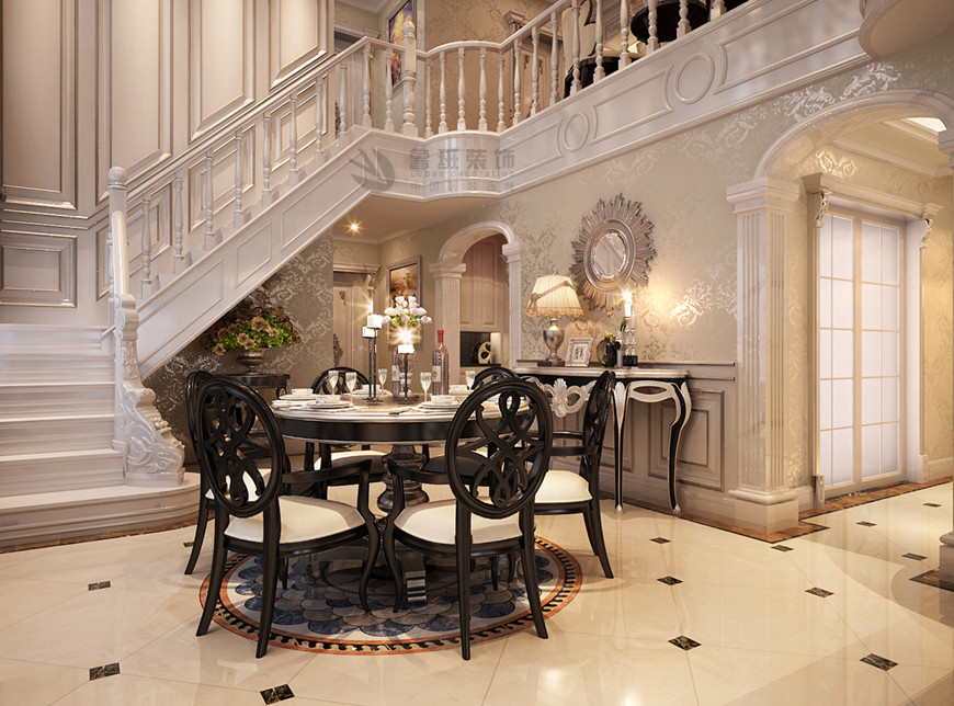 ▲鴻基紫韻複式320平米歐式設計劉燕飛主筆(bǐ)設計——餐廳設計效果圖