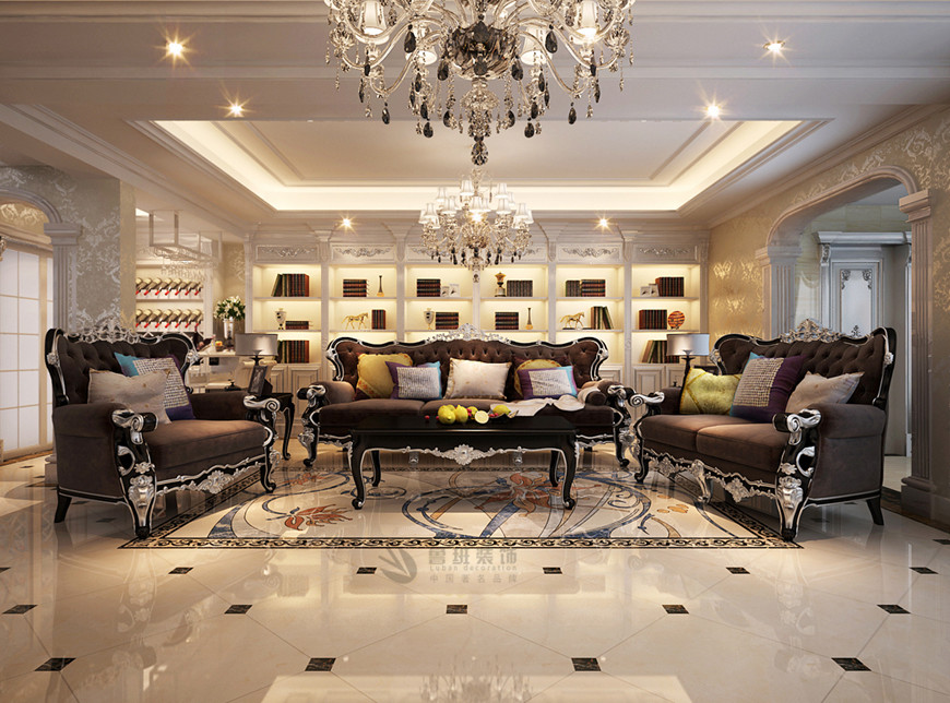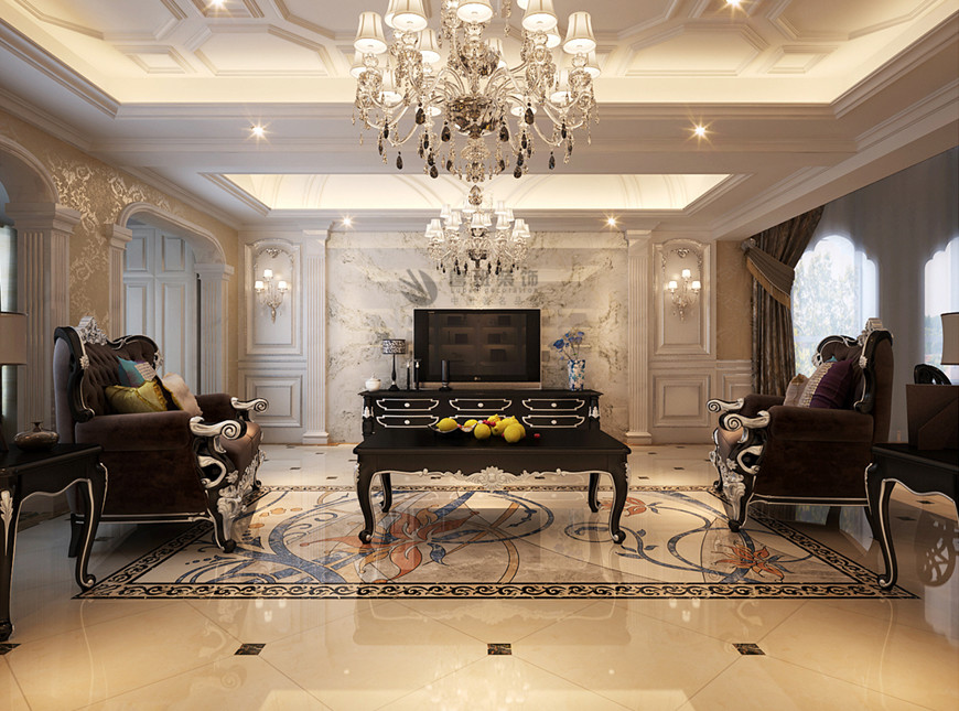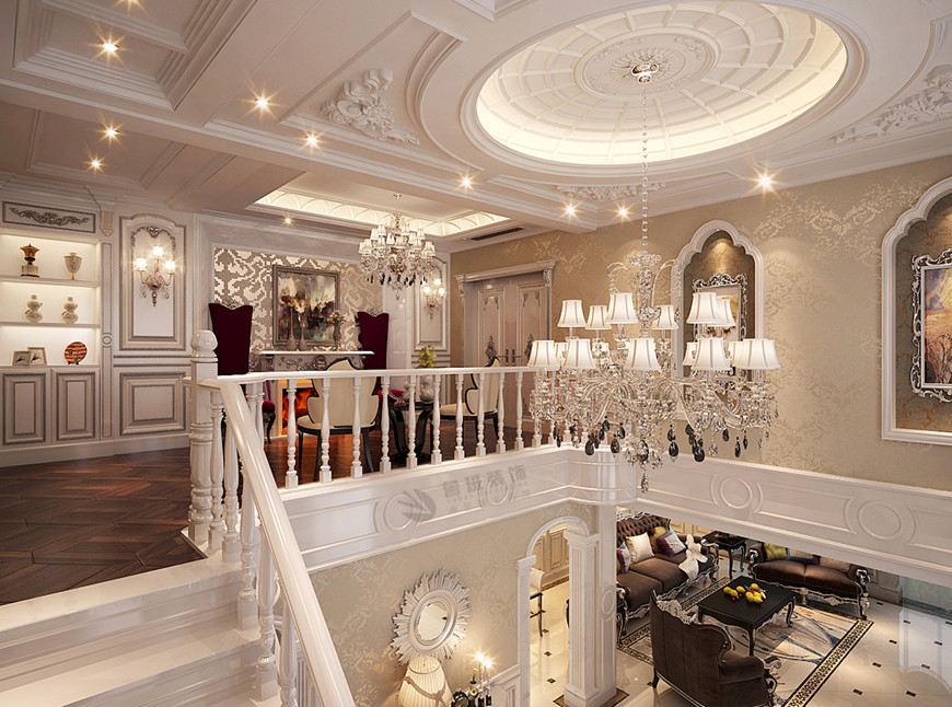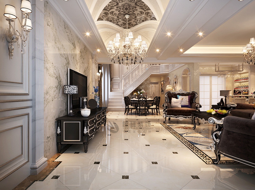 ▲鴻基紫韻複式320平米歐式設計劉燕飛主筆(bǐ)設計——客廳設計效果圖展示