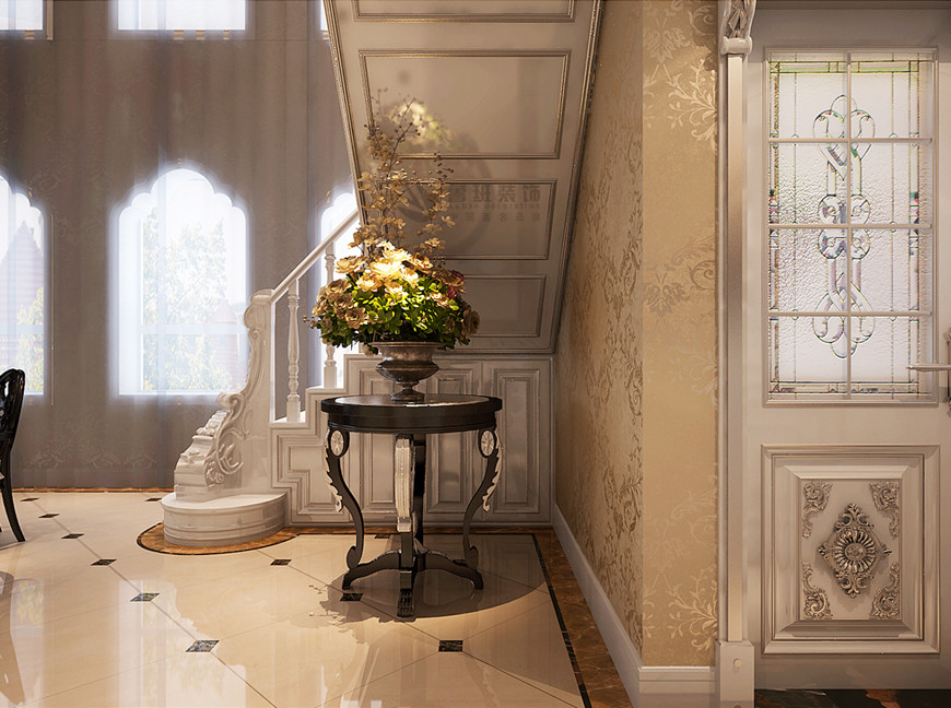 ▲鴻基紫韻複式320平米歐式設計劉燕飛主筆(bǐ)設計——樓梯間設計效果圖