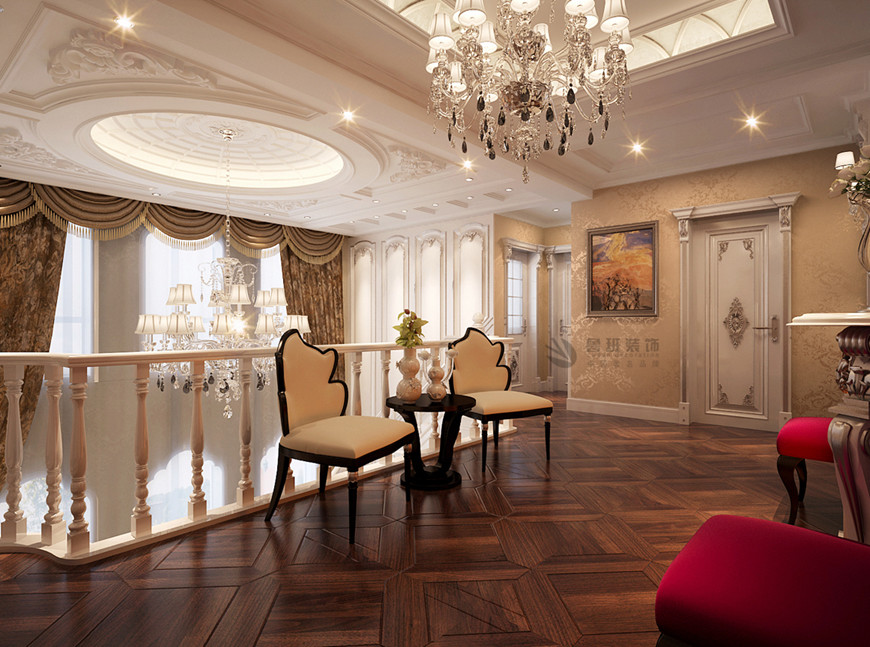 ▲鴻基紫韻複式320平米歐式設計劉燕飛主筆(bǐ)設計——二樓起居室設計效果圖