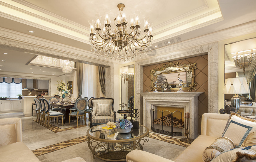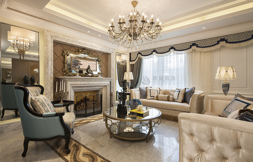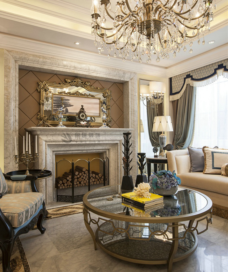 ▲金地湖(hú)城大境法式195平米複式李建明主筆(bǐ)設計——客廳細節效果圖