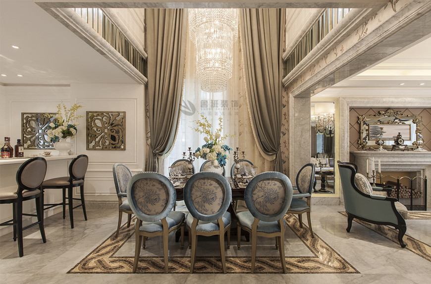▲金地湖(hú)城大境法式195平米複式李建明主筆(bǐ)設計——餐廳設計